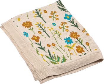 Cotton Knit Baby Blanket with Florals, Multicolor