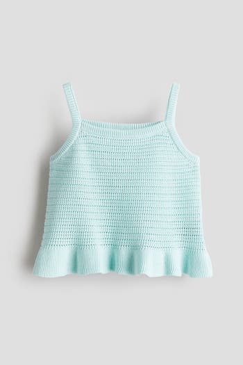 Strappy top in soft, textured-knit cotton with ribbed trims. Square neckline, shoulder straps and a flared hem.