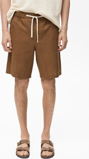 Perfect for weekend getaways, these cotton-and-linen Bermuda shorts with a drawstring waist and soft pleats are a closet staple.