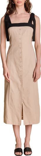 Endless Rose Cotton & Linen Blend Midi Sundress, Main, color, Sand/ Black