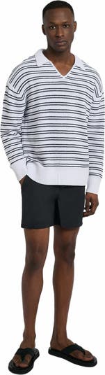 Knit from a breathable cotton-linen blend, this long-sleeve polo sweater has a relaxed fit with an open collar as well as ribbing at the cuffs and hem.