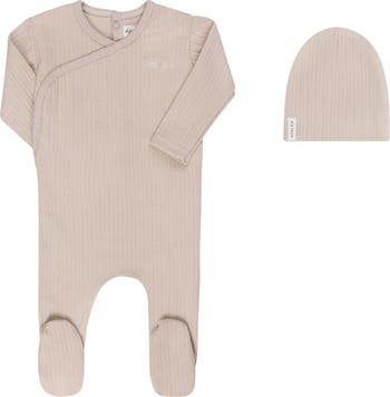 Bundle up your little one in our playful Cotton Little One Collection! Made with organic ribbed cotton, this kimono-style footie and matching beanie provide ultimate comfort and style.