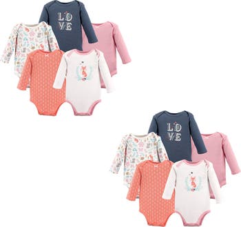 Hudson Baby long-sleeve bodysuits are an essential part of baby's wardrobe. Our bodysuits feature adorable prints, embroideries, stripes and solids and provide a comfortable base layer that's great for pairing with pants, shorts, or even wearing under outfits. Our bodysuits are comfortable and cozy for all-day, everyday wear for your little one.