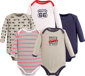 Luvable Friends long-sleeve bodysuits are an essential part of baby's wardrobe. Our bodysuits feature adorable prints, embroideries, stripes and solids and provide a comfortable base layer that's great for pairing with pants, shorts, or even wearing under outfits. Our bodysuits are comfortable and cozy for all-day, everyday wear for your little one.