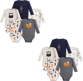 Hudson Baby long-sleeve bodysuits are an essential part of baby's wardrobe. Our bodysuits feature adorable prints, embroideries, stripes and solids and provide a comfortable base layer that's great for pairing with pants, shorts, or even wearing under outfits. Our bodysuits are comfortable and cozy for all-day, everyday wear for your little one.