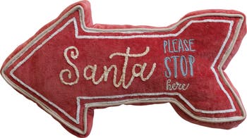 - A colorful "Santa Please Stop Here" message adorns this lumbar pillow, inviting a cheerful holiday spirit into the home