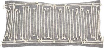 - This modern lumbar pillow showcases a durable cotton construction with appliqued rope, and intricately embroidered metallic accents