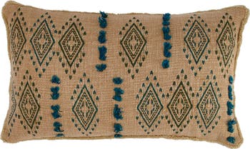 - This global lumbar pillow features tufted geometric embroidery on soft cotton finished with decorative fringe