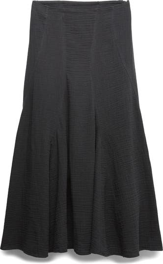 Textured cotton brings subtle dimension to this maxi skirt with strategic seaming to maximize the soft, flowy drape.