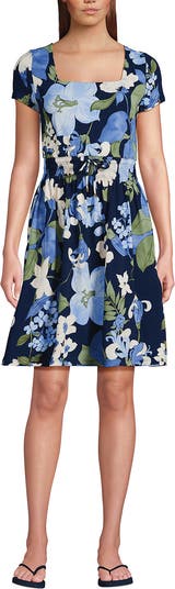 Lands' End Cotton Modal Smocked Waist Dress, Main, color, Deep Sea Navy Lilies