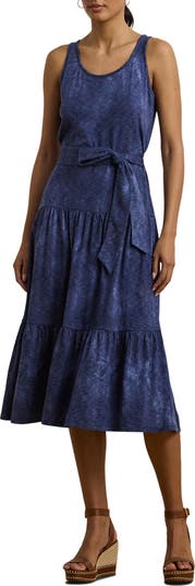 This tiered tank dress is made from a mottled knit of cotton and modal and features a tie belt to cinch the low-key look.