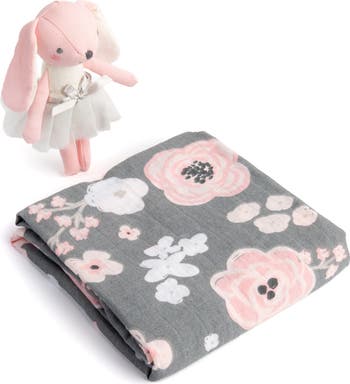 Cotton Muslin Swaddle Blanket & Stuffed Animal Gift Set