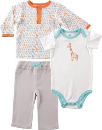 Yoga Sprout features fun, comfortable clothing with vibrant colors and playful patterns. This adorable layette set features soft, stretchable, 100 percent cotton fabric that is sure to keep up with your active little sprout. Available in sizes up to 24 months. Mix and match additional garments from our coordinating collections From happy baby pose to every day adventures, grow, relax and be happy, with Yoga Sprout.