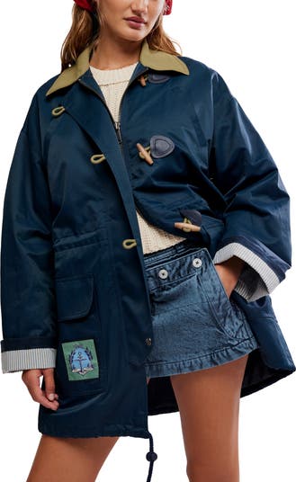 Laid-back vibes meet nautical inspiration on this cotton-and-nylon utility jacket cut in a relaxed fit and trimmed with a contrast khaki collar and blue-striped lining. Wooden toggle buttons fasten down the front, while drawstrings cinch in the waist and hem to your liking.
