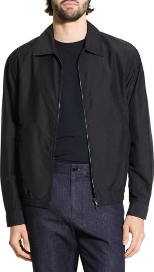 Lightweight and easy to pack, this jacket made of cotton and recycled fibers features a crisp finish that keeps you looking smart in cool weather. A pointed collar and elastic in the waist complete the classic, wear-everywhere detailing.