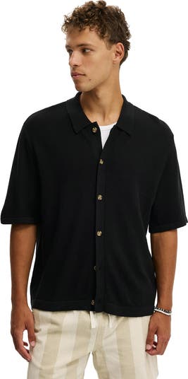The Box fit short sleeve shirt is a staple for your shirts collection. This knitted shirt features a loose fit, button front and ribbed hem and sleeve cuffs