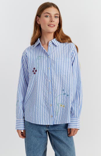 This refined striped cotton shirt is brought to life with delicate floral embroidery. Combining crisp shirting with playful detailing, it’s designed for a relaxed fit and finished with a neat collar - a joyful update to a wardrobe staple.