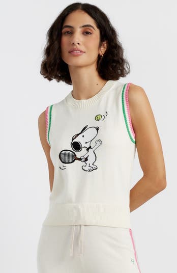 Our best-selling tank is a sporty yet stylish piece, featuring Snoopy with a tennis racket in a fun, playful design. Made from pure cotton, this tank offers a soft, breathable fit, perfect for warm days. The slightly cropped cut and contrasting trims give it a modern touch, making it a great choice for both casual outings and active moments.