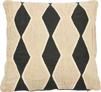 - This contemporary, textured throw pillow features an embroidered geometric pattern and delicate applique on cotton