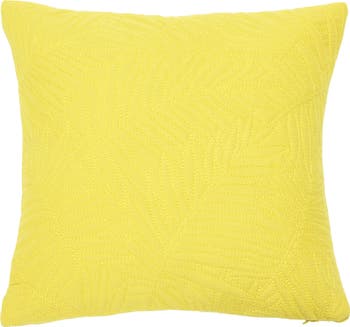- Square chartreuse throw pillow with quilted fern frond pattern; Chartreuse cotton encasement on back