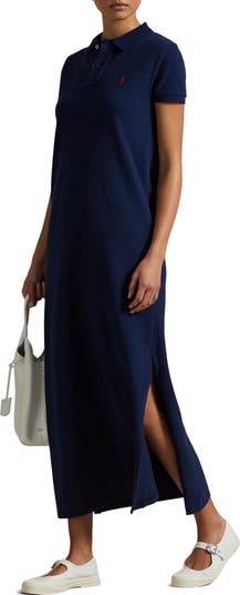 Iconic since its '71 debut, an embroidered polo rider hints at the preppy heritage of this longline polo-dress cut from breathable cotton piqué.