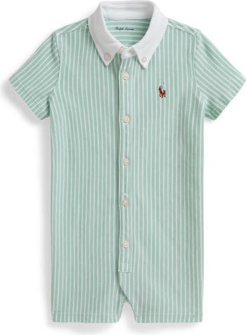 Inspired by a classic Oxford button-up, this romper keeps baby looking their best with its subtle stripes, smart collar and piqué texture.