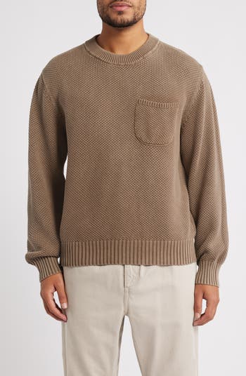 Rich with texture, this crewneck sweater is knit in a distinctive rice stitch that adds depth without weight. A vintage wash gives the cotton a lived-in softness from day one, while the chest pocket keeps the look grounded in classic, easygoing style.