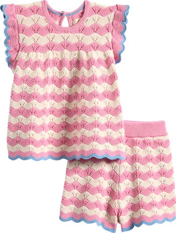 Your babe will be picture-perfect in a cotton set comprised of a flouncy top and scallop-hem shorts.