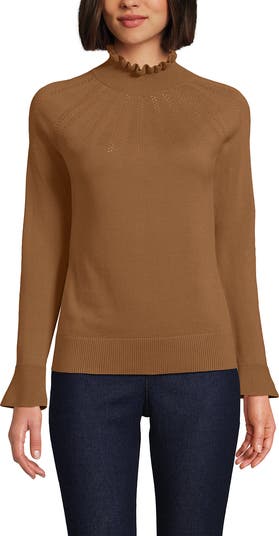 This pointelle turtleneck sweater brings a touch of vintage charm to your wardrobe thanks to its softly puffed sleeves and graceful fluted cuffs. Lightweight yet cozy, it's the perfect balance of texture and elegance for cooler days.