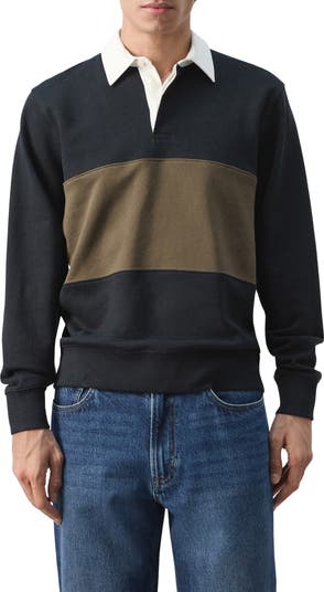 This rugby-inspired polo sweatshirt is topped by a neat collar and made with a classic colorblocked design.