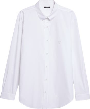 Sophisticated simplicity informs this button-down shirt that's cut from Italian cotton poplin and finished with a subtly curved hem. A tonally embroidered logo subtly references to the label's labyrinth motif.