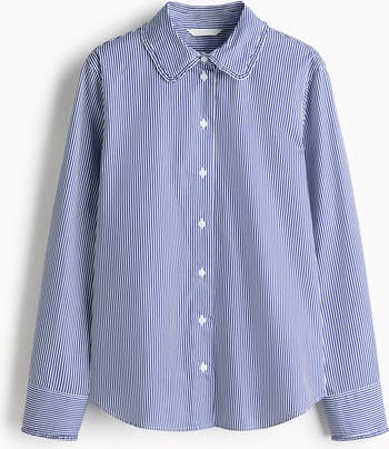 Long-sleeved shirt in crisp cotton poplin with a frill-trimmed collar, buttons down the front and a yoke at the back. Frill-trimmed cuffs with a button, and a gently rounded hem.