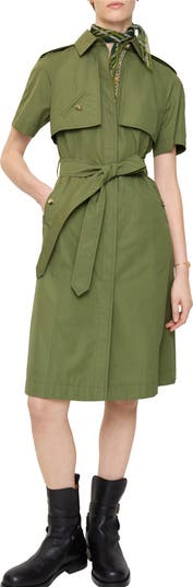 A short-sleeved dress made from cotton poplin. Reworking signature details from our iconic trench, the belted style is detailed with a storm shield, gun flaps and epaulettes. Both sleeves feature adjustable button tabs with Burberry Check taping in signature sand beige.||Button closure|Epaulettes|Self-tie belt|Chest button jet pocket, side button jet pockets|Back vent