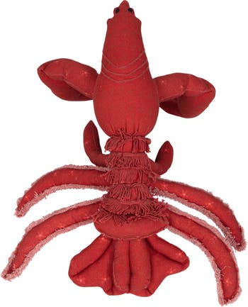 - A whimsical lobster-shaped pillow in vibrant red with intricate embroidery and fringe detailing