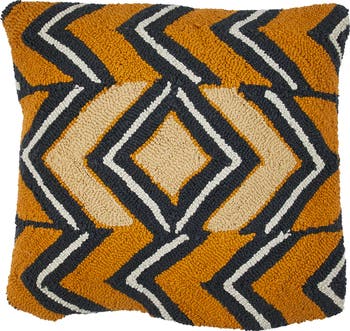 Multicolor punch hook pillow with chevron design; Cover: 100% Cotton, Filling: 100% Polyester; 18"L x 18"W x 2"H