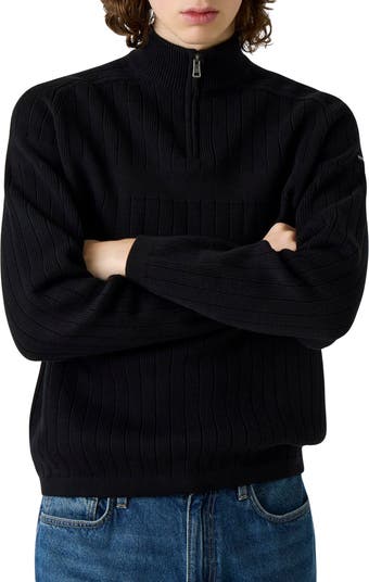 Knit from soft cotton yarns with wide ribbing that enhances the eased-up structure, this sweater is a layer-ready addition to your cold-weather staples.