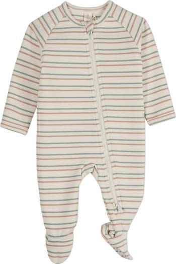 Zip 'em into this adorable footie, and they'll never want to take it off. It comes in our premium cotton-rich blend for cozy comfort and buttery softness. It has spandex for flexible fit, raglan sleeves for freedom of movement, and gently elasticized feet for toasty warmth. Best of all, there's a 2-way zipper for fuss-free changes.