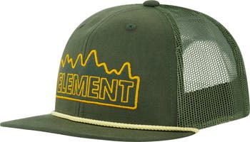 Channel rugged outdoor energy with the Element Cotton Ripstop Trucker Cap, built for durability and breathability. The structured front panel is crafted from tough cotton ripstop fabric, designed to handle the elements while keeping its shape. The cap features a bold textured embroidery of the Element logo framed by a mountain outline — a nod to the brand’s deep connection with nature and adventure. A contrast rope detail along the brim adds a vintage trucker touch, while the mesh back and snapback closure provide airflow and an adjustable fit for all-day comfort.