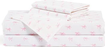 This soft sheet set is covered in a sweet bow print and made from crisp long-staple cotton percale that's lightweight, breathable and cool to the touch, keeping you comfortable no matter the temperature.