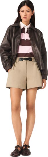 Sun-drenched radiance, natural textures and precious details: the collection celebrates a radiant wardrobe where sophistication is combined with freedom of movement.These straight-leg shorts stand out with their high waist and slightly loose fit, enhanced by a black leather belt with a gold buckle that structures the silhouette. The patch pockets on the back, the fine topstitching and the tone-on-tone embossed logo showcase the studio's expertise, while the matte cotton offers an elegant and natural drape.Give the look a twist by pairing them with a leather jacket and flat sandals, and opt for the casual contrast of a striped polo shirt.