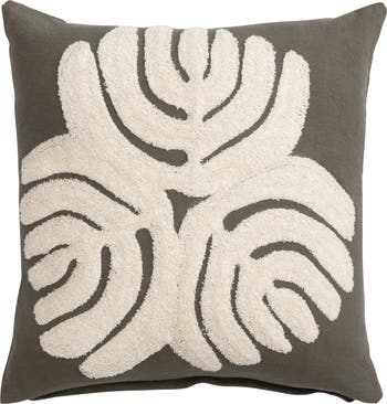 Olive green and cream cotton slub pillow cover with embroidery and abstract design; Cover: 100% Cotton; 20" L x 20" W