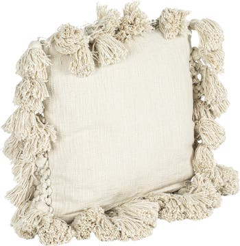 Cotton Slub Pillow with Crochet and Tassels, Cream