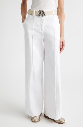 Structured cotton twill gives these Italian-crafted wide-leg pants a clean, sculpted stance that reads straight off an atelier rack. Precision pintucks run with intent to add depth and architecture, while added stretch keeps the feel comfortable all day.