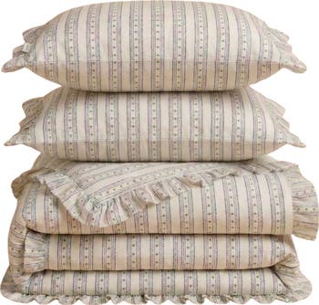 Instantly upgrade your bedroom with this TBCo Cotton Striped Ruffle Bedding Set. The cotton is skin-friendly and breathable, ensuring a peaceful night's sleep. Best paired with cosy evenings and slow mornings. Dust bag included for easy storage. Set includes a soft cotton duvet cover and pair of matching pillowcases.