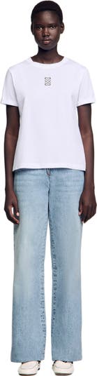 Round-neck, short-sleeved cotton T-shirt with embroidery.