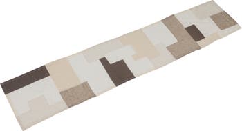 - This contemporary cotton table runner showcases an abstract, multicolor patchwork design
