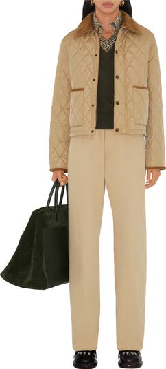 Trousers in Italian-woven cotton twill, brushed for a soft finish. The unlined style is tailored to a relaxed fit and embroidered with our B shield, a motif inspired by the Equestrian Knight Design.||Elasticated waist|Side slip pockets, back welt pocket|Embroidered B shield at back