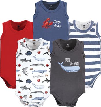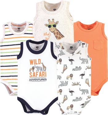 Hudson Baby sleeveless bodysuits are an essential part of baby's wardrobe. Our bodysuits feature adorable prints, embroideries, stripes and solids and provide a comfortable base layer that's great for pairing with pants, shorts, or even wearing under outfits. Our bodysuits are comfortable and cozy for all-day, everyday wear for your little one.