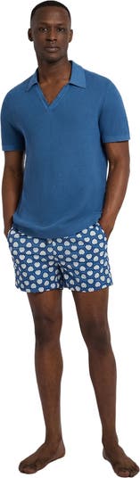 Onia Cotton Textured Johnny Collar Polo, Alternate, color, Vintage Indigo