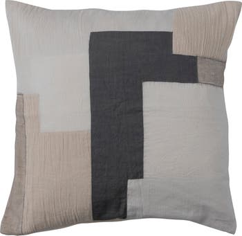 - This modern throw pillow cover showcases cotton construction in a patchwork geometric design